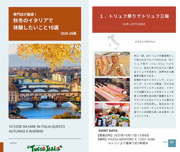秋冬のイタリアで体験したいこと10選2025-26版 限定ガイドブックをプレゼント