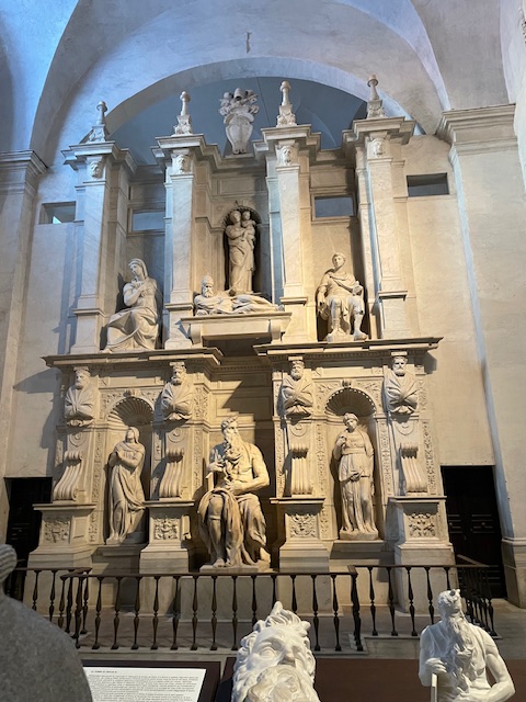 5日目は、ヴェッキオ宮殿で、ミケランジェロの死までフィレンツェのアトリエに残っていたという「勝利者」を鑑賞し、サンタ・クローチェ教会にあるミケランジェロのお墓を参拝。ここに居るのが不思議なくらい有難い経験をさせて頂きました。