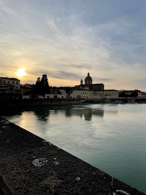 ホテルも、駅前の、立派なホテルだったので、スムースにチェックインでき、部屋に荷物を置いてすぐに近くにあるメディチ家礼拝堂に向かい、その後、明朝予約をしているドゥオーモを確認し、夕日の綺麗なアルノ河周辺を散策しました。