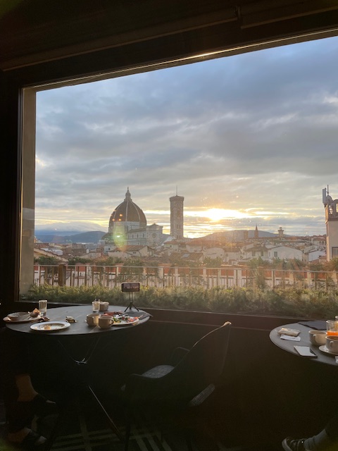 ホテルでの朝ごはんは、ドゥオーモのクーポラやジョットの鐘楼が眺められる最高のロケーションで、素晴らしい朝を迎えることができました。