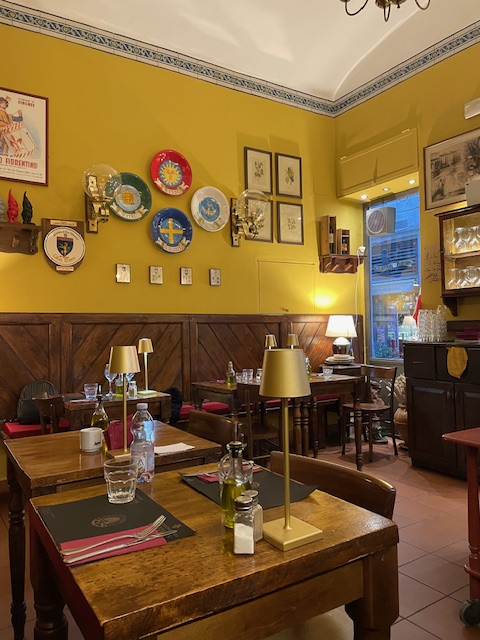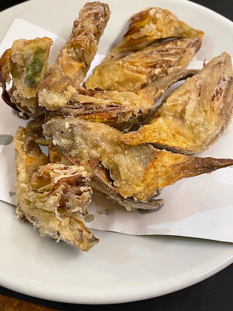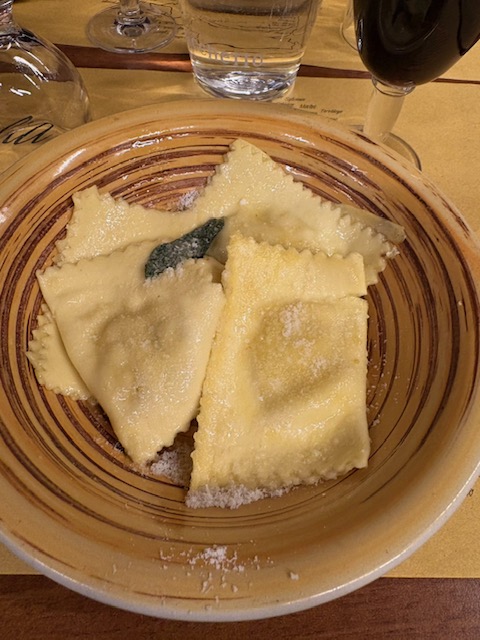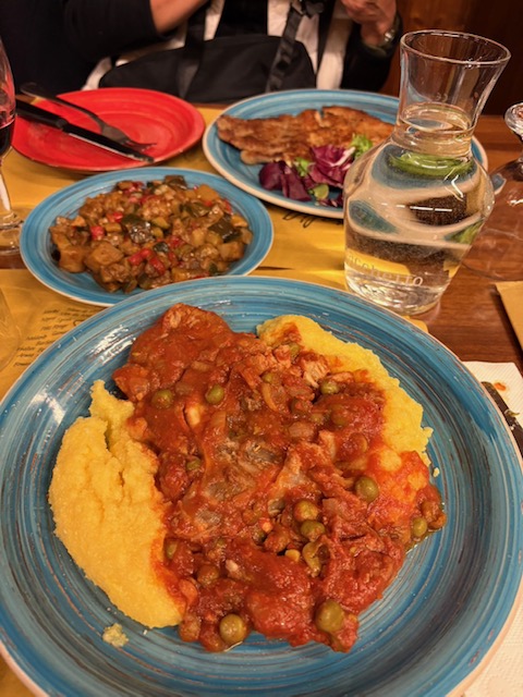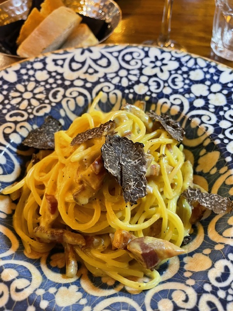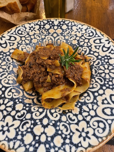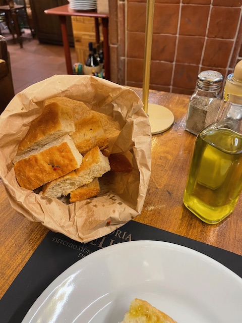 その後、フィレンツェの街を散策し、郷土料理のパッパルデレ・チンギアーレや、カルフィーチョの揚げたもの、スキアッチャータをワインと共にホテル近くのオステリアで食べました。このお店、通しで営業していてとても美味しかったので、次の日も伺いました。
