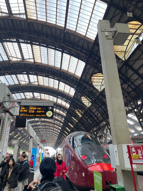 6日目、Italoに乗ってミラノに移動。この電車もビジネスクラスでとても乗りやすかったです。そして、到着したミラノ中央駅の豪華さに圧巻され出口を探しました。ホテルは、駅前だったので、難なくチェックインできました。